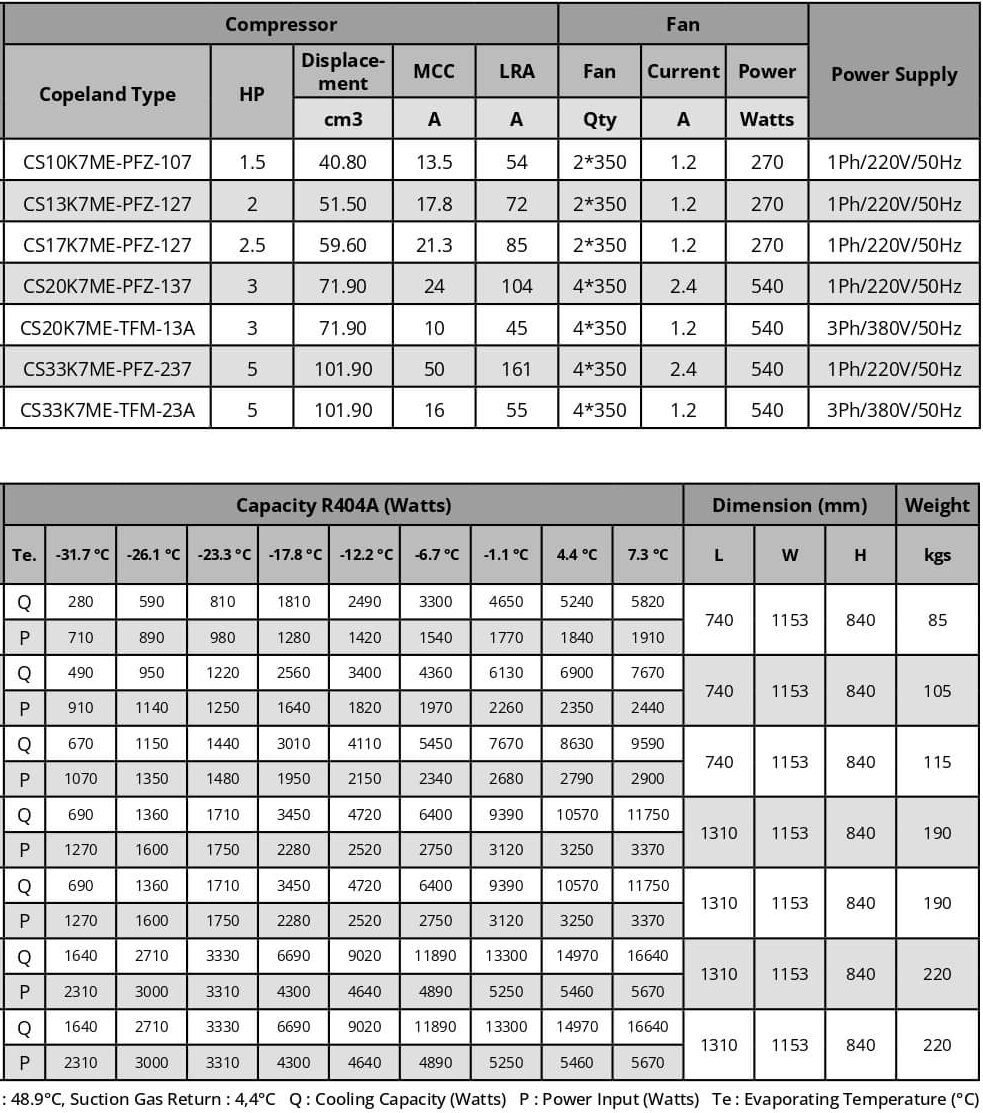 - Refrigerant: R404A